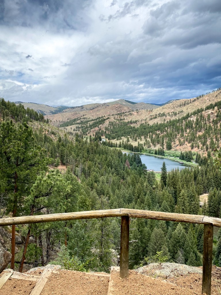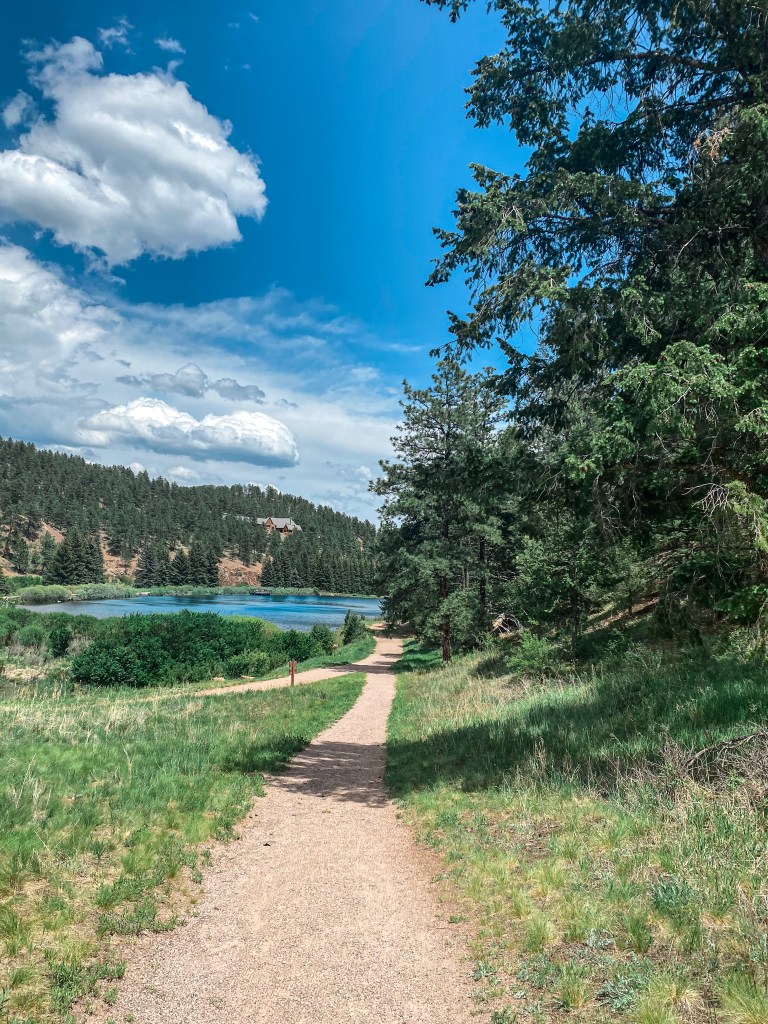Pine Valley Ranch Park, located in Pine, CO, about an hour away from Denver offers a wide variety of hiking trails with a beautiful lake.